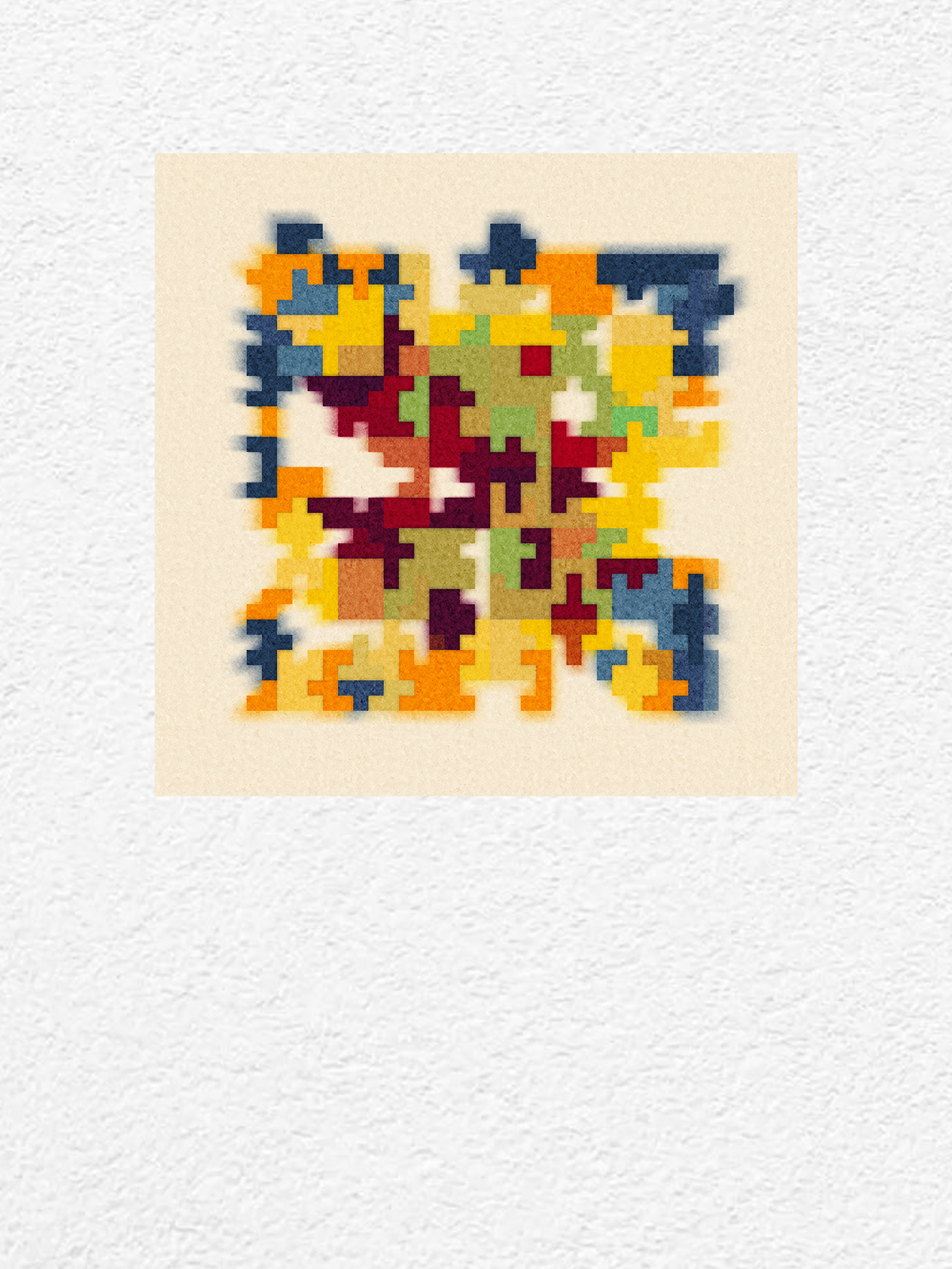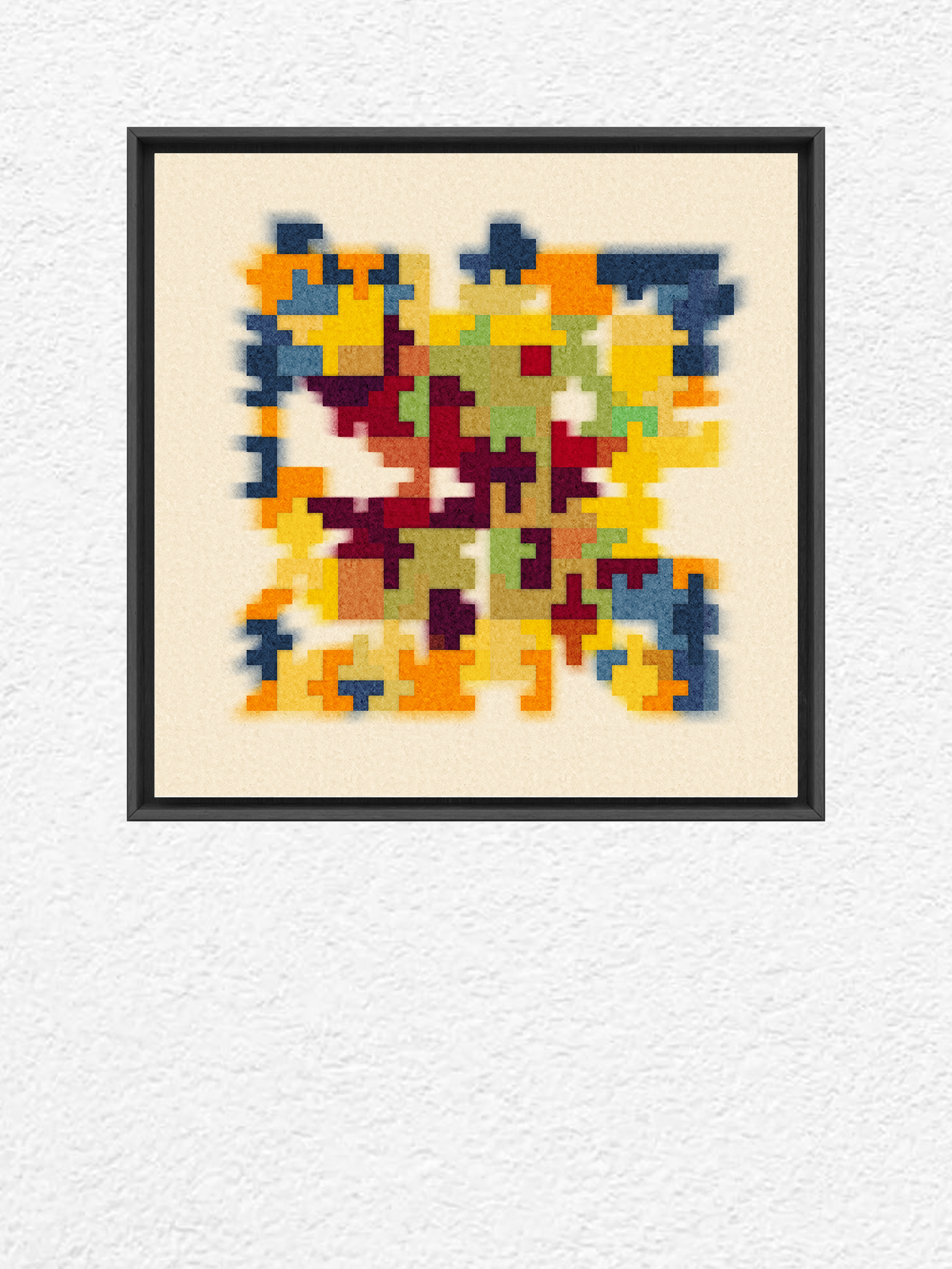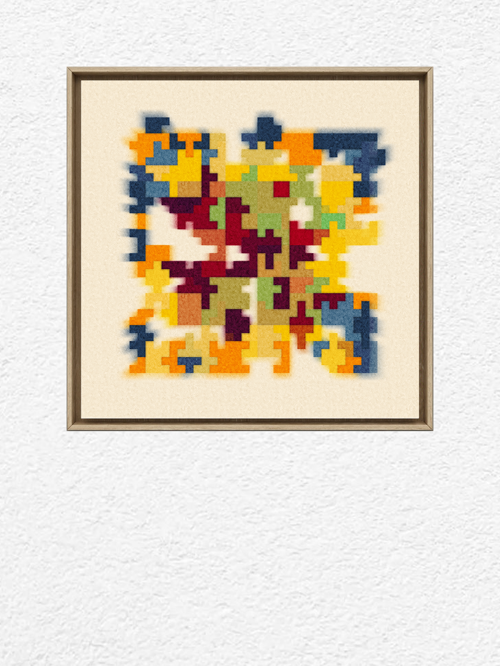 Yellows, blues, reds, and greens snap together like puzzle pieces, forming a vibrant, dynamic cluster.
